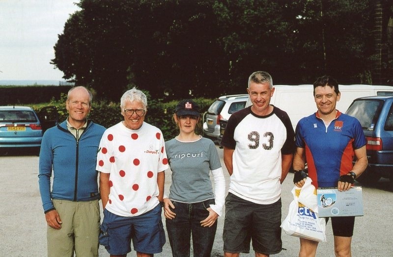 John Weller, Philip Ashbourn (founder of CTC Milton Keynes section - 1977), Claire Yearby, Mike, Philip Gray in 2005