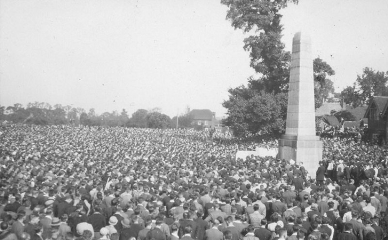 Unveiling, in 1921 of the Cyclists' War Memorial on Meriden Green, Warwickshire, by Lord Birkenhead.