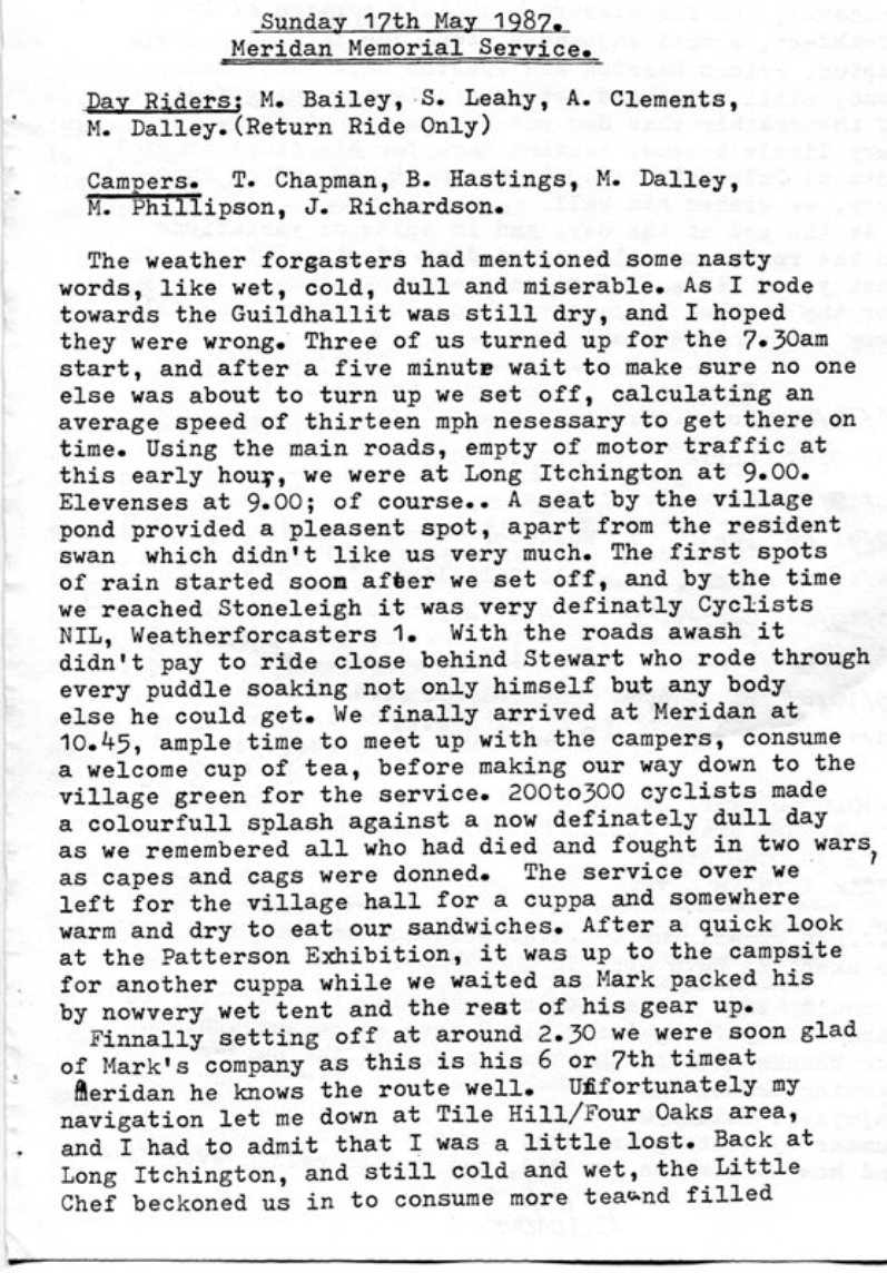 Wednesday night was club night, formerly in several rented rooms, but in 1996, became too expensive. Since 1996, there has been a ‘pub night’ every week, until it was removed from the ‘rides list’ around 2008. In 1997 Bill Simpson joined the club and gives a personal account from his diary about the apparent decline in members going on the Northampton Section Rides and how he rebooted the clubs activities by becoming a ride leader.