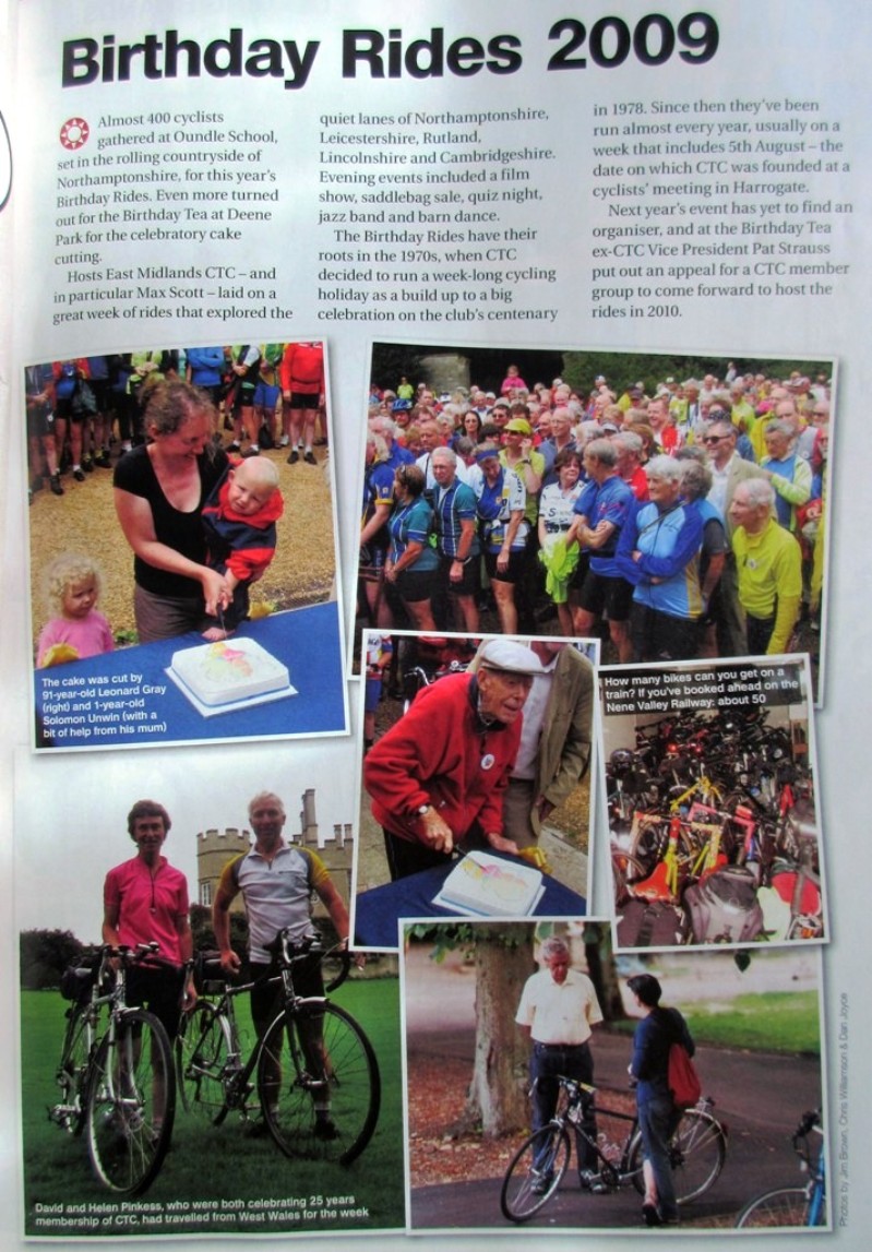 The CTC Birthday Rides returned to Northamptonshire nineteen years later, using Oundle School as its accommodation. This was organised by Max Scott and volunteers from local CTC groups.